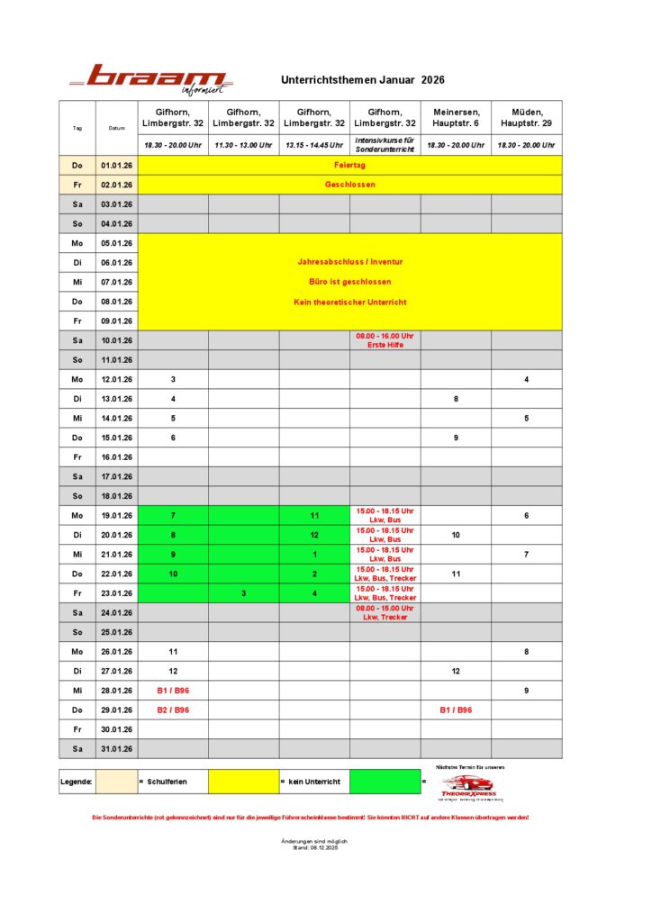 Unterrichtsthemen Januar 2026