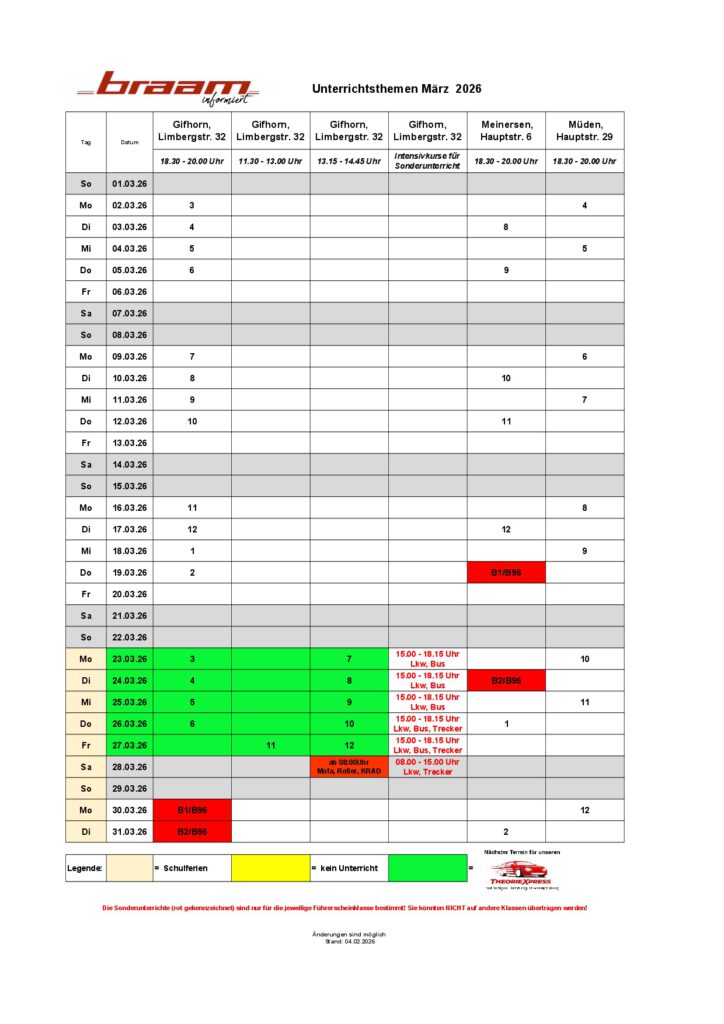 Unterrichtsthemen März 2026